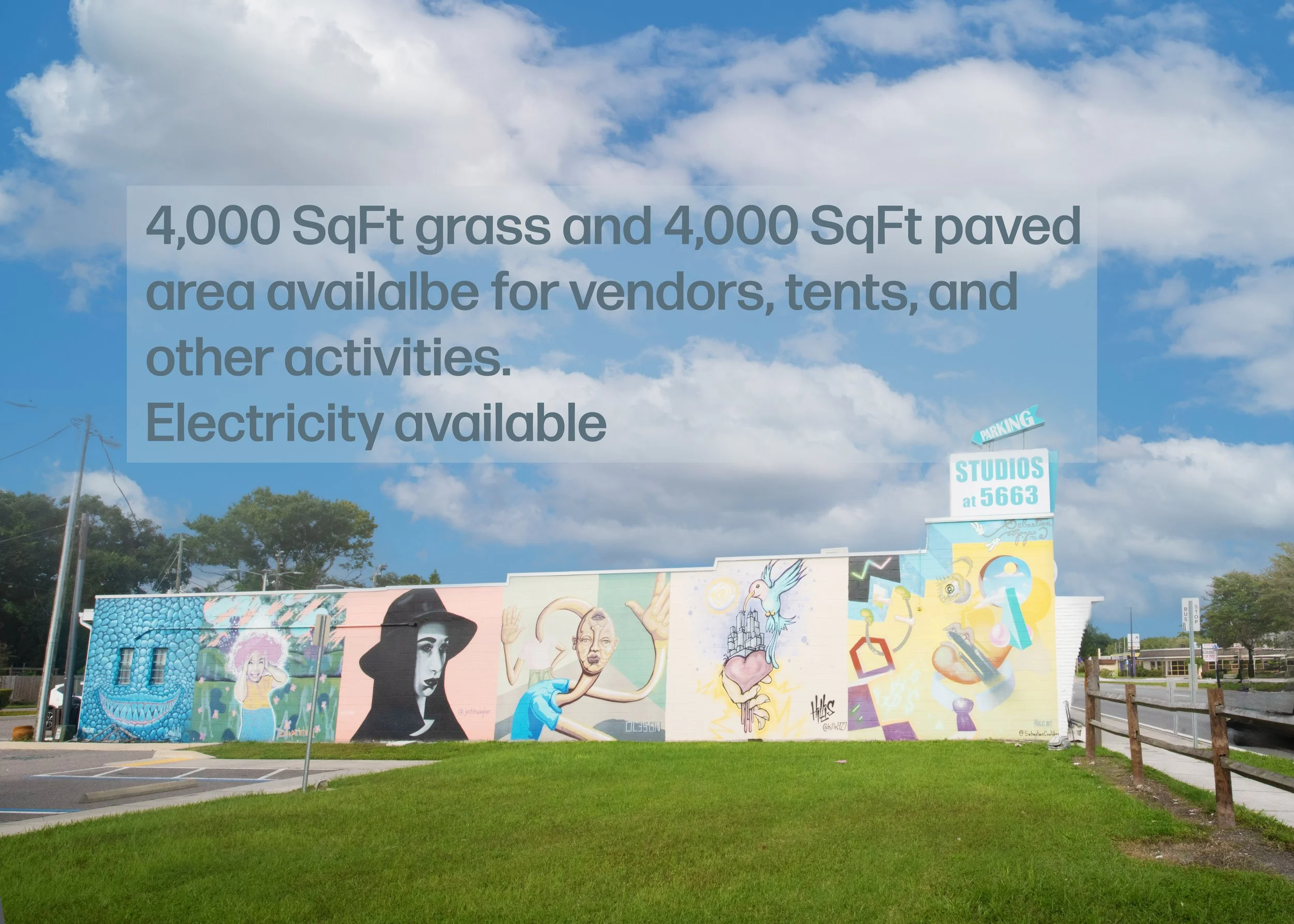 About 8,000 square feet of outdoor space ideal for vendor events and parties. Combine it with our indoor space rental for larger events. electricity available.
